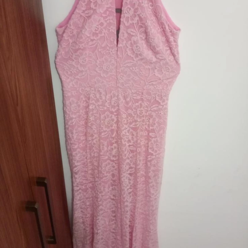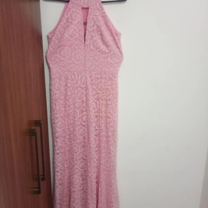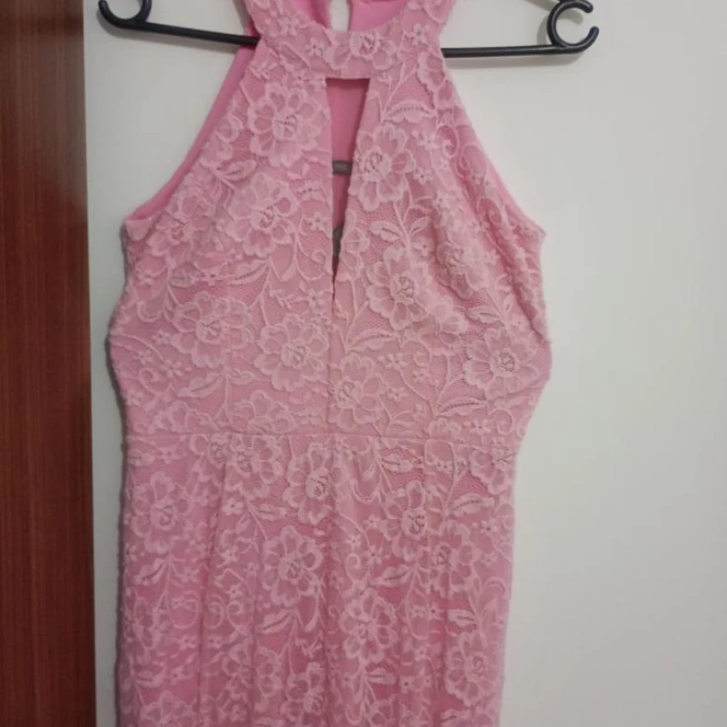 Vestido Longo Rosa com Renda – Elegância para Momentos Especiais! ✨